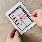 The included professional watercolor dot card offers carefully selected, artist-grade pigments; each drop is hand-created and gives enough color for 1–2 complete postcards. A sample postcard is added for inspiration.